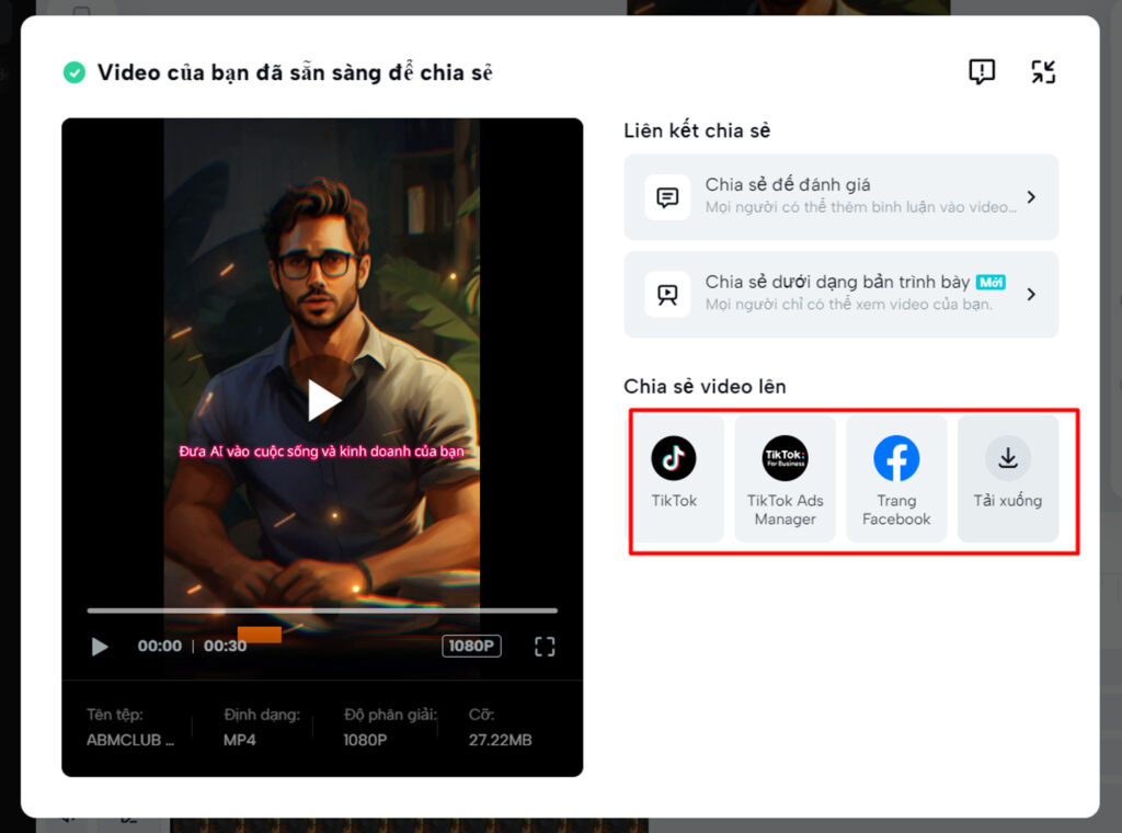 Bước 9. Tải về hoặc chia sẻ trực tiếp lên các nền tảng