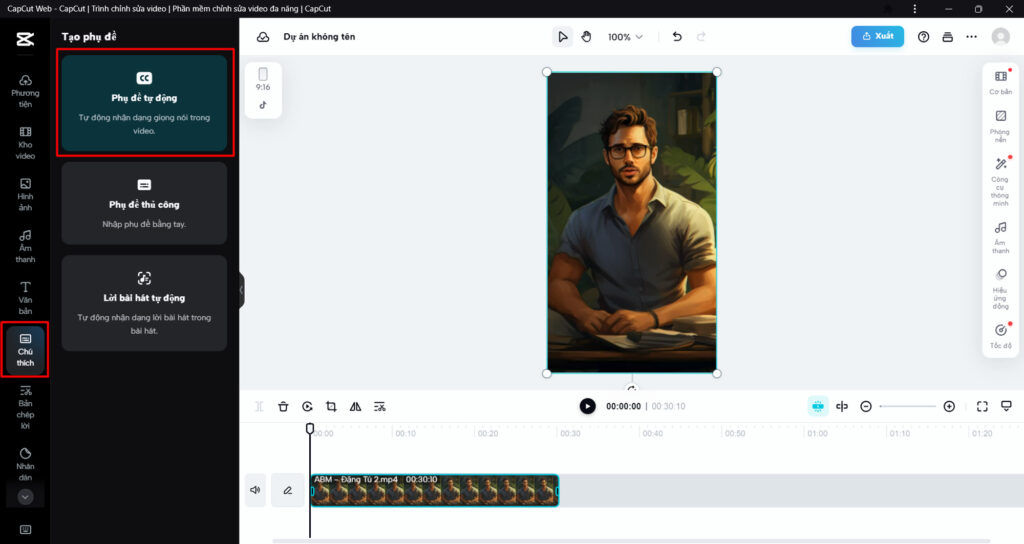 Ấn vào Chú Thích → Tạo Phụ Đề → Phụ Đề Tự Động