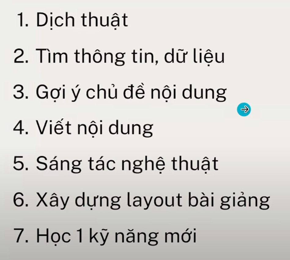 - “Cho tôi 5 ý tưởng cho bài viết quảng cáo sản phẩm mới.”(chia ý – triển khai ý theo độ dài , văn phong , hành động )